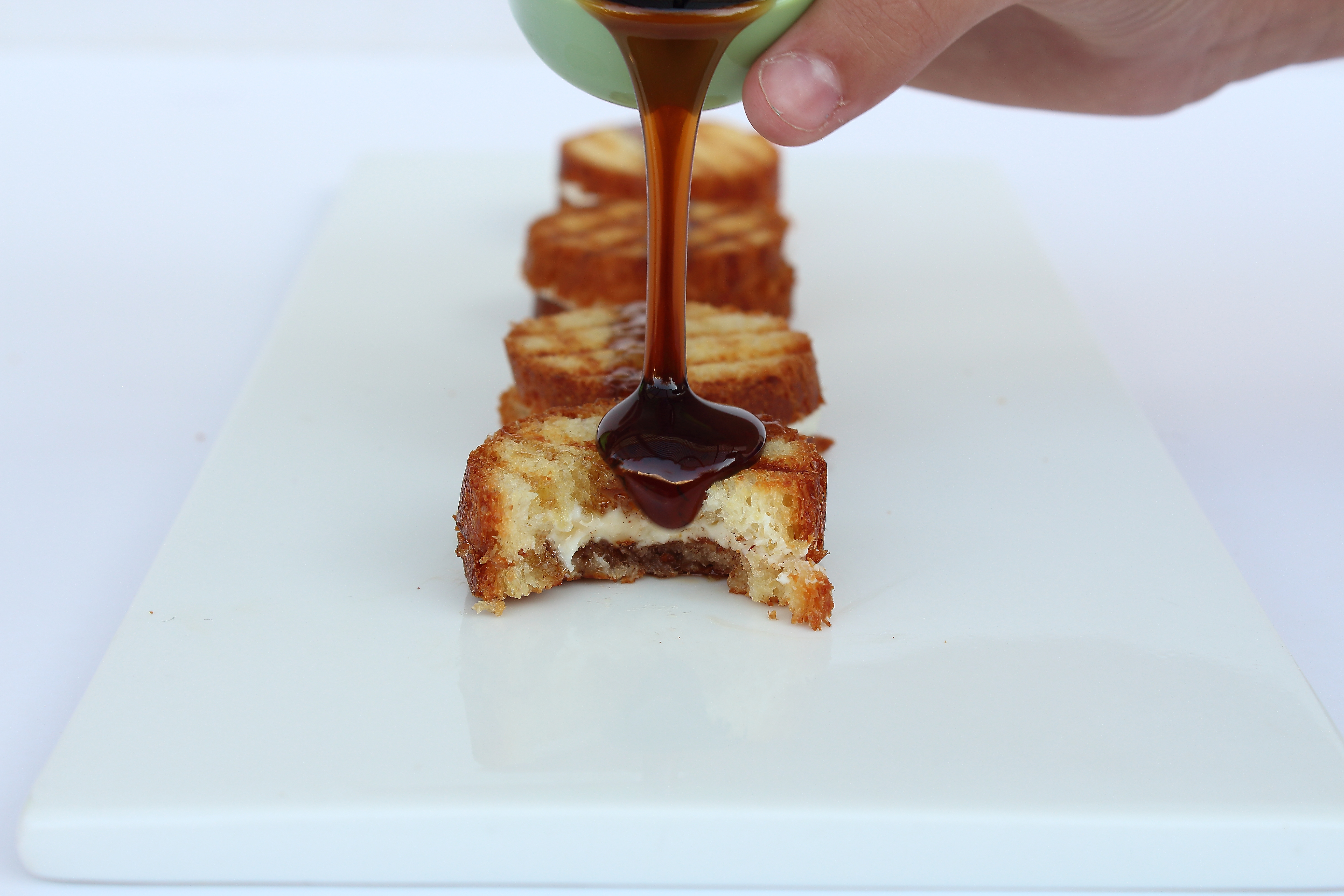 טוסט של בריוש, גבינת עיזים מותכת, מחית כמהין, ו…מייפל.