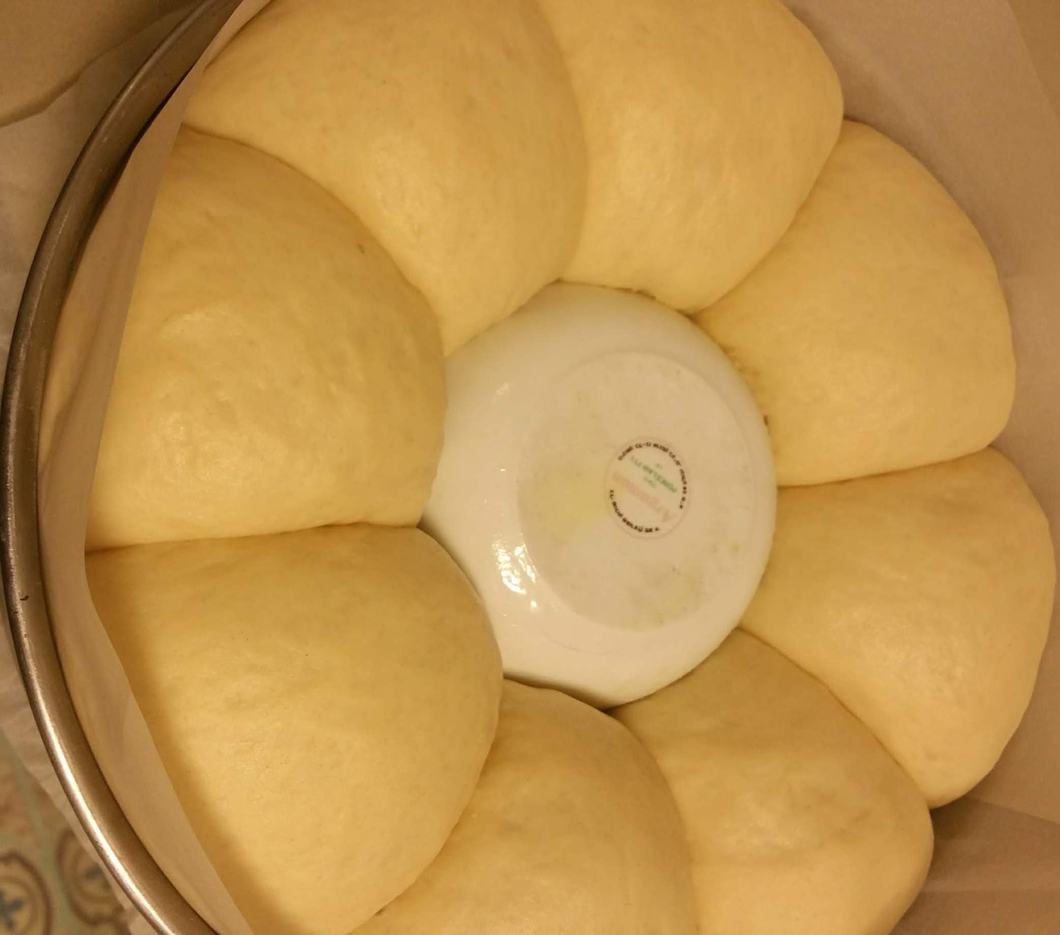 - מניחים כדורי בצק מסביב לתבנית עם רווח קטן בינהם, ומעבירים לתפיחה נוספת של כ חצי שעה.