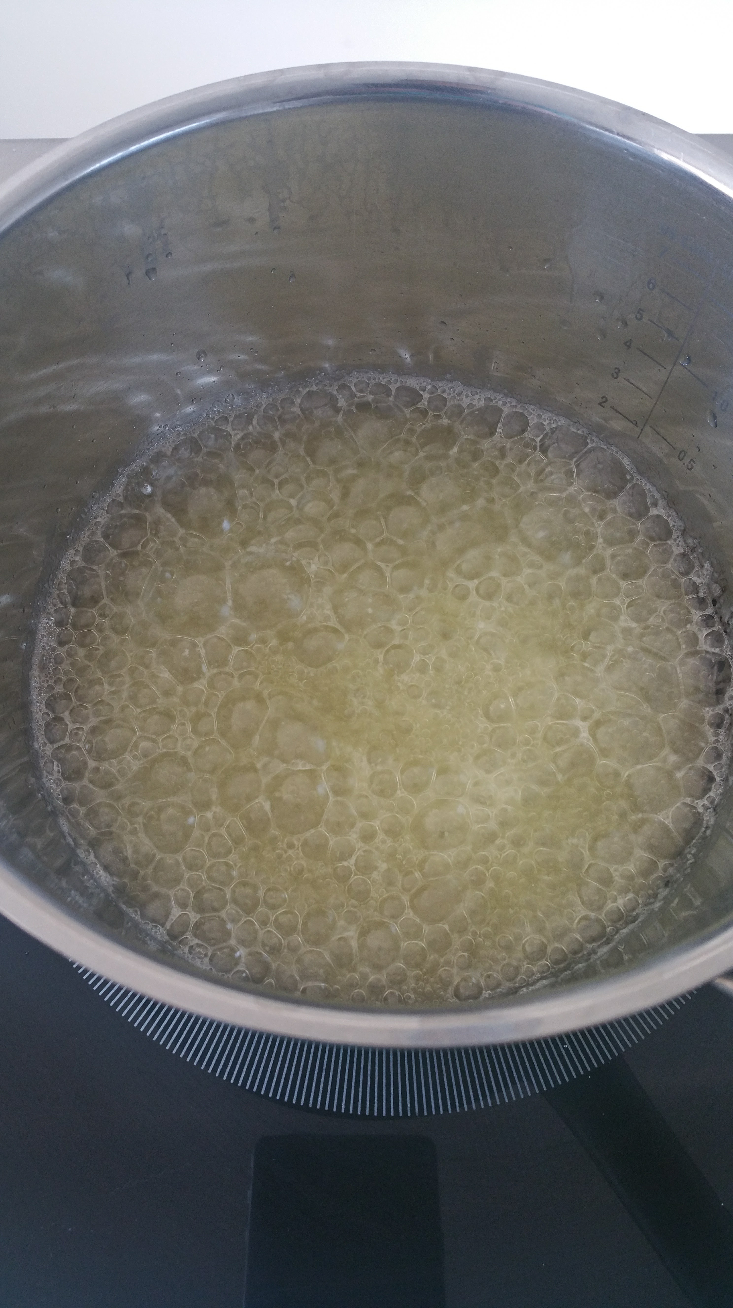 בשלב הראשון מתאדים המים, ומתקבל קצף לבן